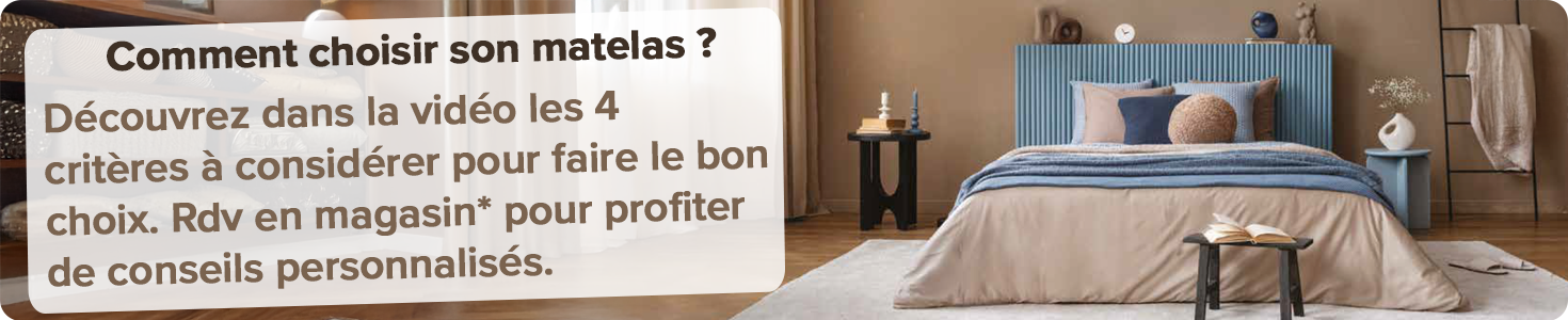En literie : nous vous aidons à passer de meilleures nuits. Nous avons sélectionné pour vous des matelas, des sommiers, des ensembles et même des oreillers et des couettes. N’hésitez pas à vous rendre dans nos magasins* pour essayer votre literie et profiter de conseils personnalisés.