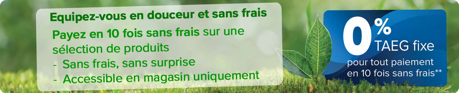 **Crédit accessible en magasin uniquement. Un crédit vous engage et doit être remboursé. Vérifiez vos capacités de remboursement avant de vous engager.