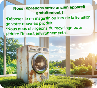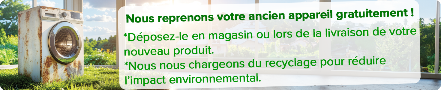 Nous nous employons à reprendre votre ancien appareil gratuitement en magasin ou lors de nos livraisons. Nous nous chargeons ensuite du recyclage.
